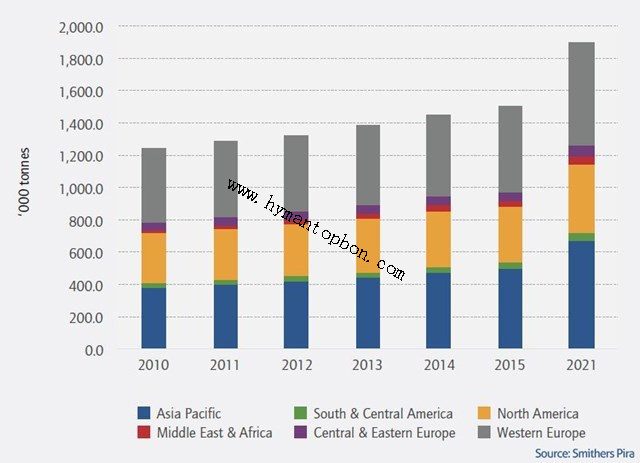 Total demand for transparent barrier films is forecast to approach 1.9 million tonnes in 2021. Key markets The US is the largest material market for transparent barrier films, followed by Japan with respective volume shares of 21% and 17% in 2014. Western Europe is the largest regional market with 35% of global market volume, followed by Asia Pacific and North America. From 2010 to 2014, Asia Pacific was the fastest-growing region with China and India driving expansion. For the forecast period 2015–2021, Smithers predicts the Middle East and Africa will record faster-than-average annual growth rates of 6.7% in transparent barrier films. North America, Western Europe and Japan are relatively mature markets and are forecast to show below-average growth for transparent barrier film during the forecast period. In terms of packaging incorporating flexible foil, Western Europe is also the largest regional market for flexible aluminium foil packaging film, followed by Asia Pacific and North America. The Middle East and Africa, and South and Central America will lead growth in aluminium foil packaging film sales during the forecast period 2015–2021. Despite Asia Pacific being the largest overall market for packaging, foil is not the favourite packaging option for brand owners in China and India. The high barrier demands are mainly serviced by metallised polyethylene terephthalate (PET) and cast polypropylene (CPP). Food, convenience and pharmaceutical packagingOver the past two decades, there has been continual development of monolayer and multi-layer flexible packaging products. Progress has moved from simple monolayer bags and wraps to coextruded or laminated engineered multi-layer and coated constructions comprising plastics, paper and metal foils, coatings and other additives. These flexible packages provide a high barrier to gas and vapour, extended shelf-life and convenience, which are increasingly demanded in food, consumables and pharmaceutical packaging. Food packaging continues to be the largest end-use segment for transparent barrier films and foil flexible packaging. The fastest growing applications for pouch packaging include snack foods, beverages, meat, produce, pet food, pet supplies, pharmaceuticals and medical devices. The growth in food packaging uses is being driven by the growth of single-person and empty-nest households, families with all working adults, and the resulting consumer demand for convenience, shorter preparation times and smaller package sizes. The consumer move to on-the-go and healthy eating is also pushing single-serve packaging for snacks and beverages. While single-serve packages usually employ more packaging material per unit weight of packaged product than conventional larger packages, they also provide advantages in decreasing waste of food and other perishable contents. Growth of foil flexible packaging is partially due to the growing demand for convenience foods and pharmaceutical packaging, but the majority of foil packaging’s growth is due to the expansion of the market in emerging economies -- not due to growth within the foil market itself. Price instability has also had an effect; aluminum foil is used for a wide range of packaging products, such as foil laminates, foil lidding, blister packaging and foil bags, sachets and pouches. Replacement of rigid packagingBoth barrier foil and transparent barrier films offer advantages over rigid packaging. Flexible packaging uses fewer resources and energy than other forms of packaging. It provides significant reductions in packaging costs, materials use and transport costs as well as certain performance advantages over rigid packaging. Use of flexible packaging can minimise package transport costs between the converter, packer/filler, retailer and end user. It not only takes up less space when empty than rigid packaging, but can also be constructed on the spot from roll materials at the filling location, thereby minimising transportation of ready-formed, but empty, packaging. Rigid packaging, such as metal cans or barrier plastic containers, has nearly reached its light-weighting limit. The next step is to replace rigid packaging with even lighter-weight flexible pouches. This has started to occur but is not yet widespread due to current low speed on filling lines for pouches opposed to bottles. Increased use of bio-based materialsA number of new barrier packaging materials will become commercialised over the forecast period. The intensive development of bio-based and biodegradable polymers is forecast to start as soon as materials from cheaper agricultural wastes and by-products become price-competitive with the current fossil-based materials. The use of bio-materials will also help promote the green credentials of packaging suppliers, converters and brand owners. The development of new barrier materials such as polyglycolic acid and nanocomposites will provide expanded opportunities for providing all-plastic high-barrier barrier films. Incorporation of high-barrier structures and intelligent and active packaging technologies will also provide opportunities for the manufacture of advanced packaging designs. From Smithers Pira  |