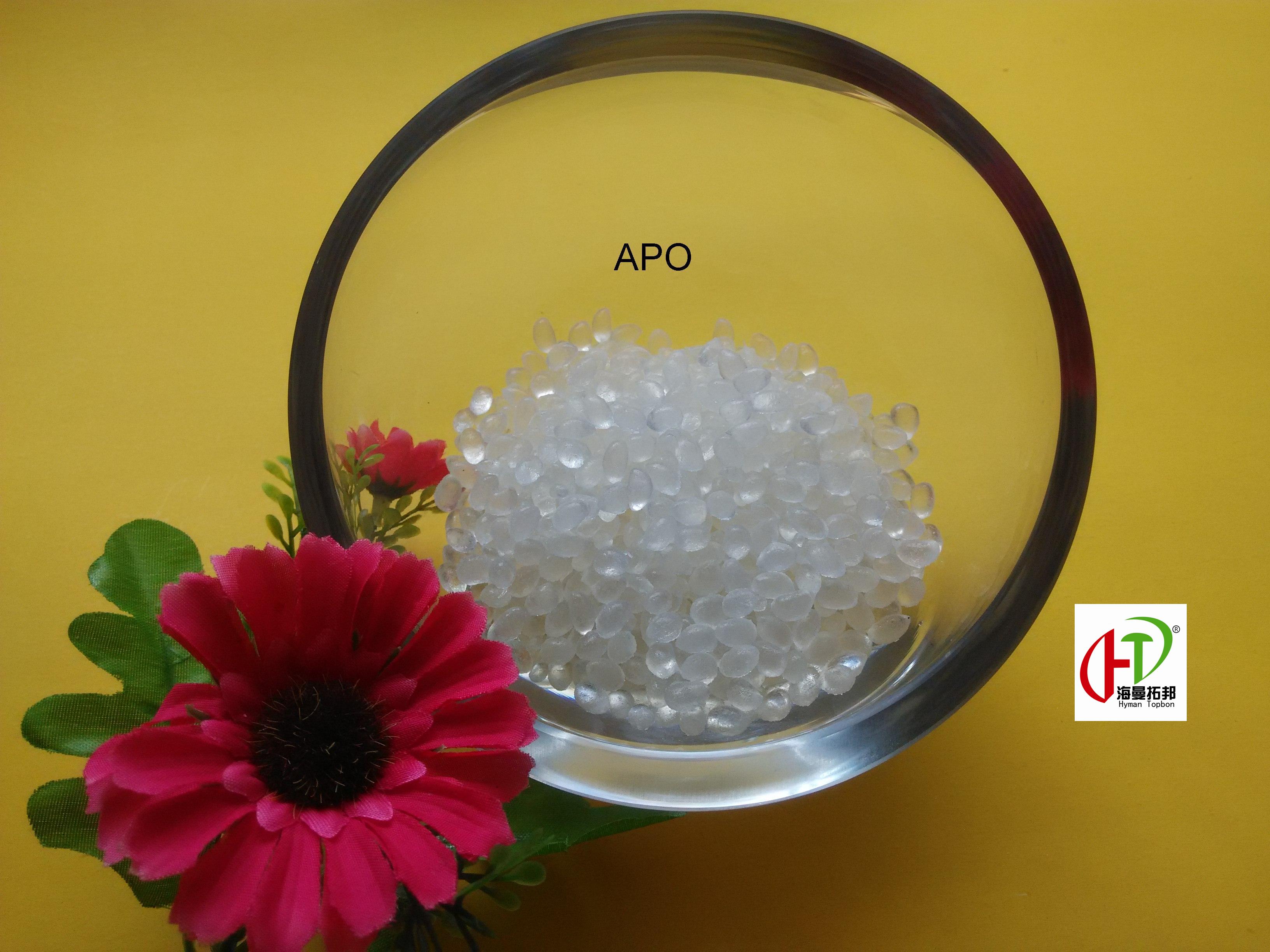 APO介紹 APO是一種低分子量的非晶態(tài)塑性體材料,是丙烯基礎(chǔ)的烯烴共聚物,微觀結(jié)構(gòu)上是一種非晶態(tài)的、無(wú)規(guī)則的排列狀態(tài),故該材料具有許多結(jié)晶性聚合物所不具備的特性,因此在其應(yīng)用上也具有特殊性。 APO廣泛兼容眾多彈性體,聚合物和增黏樹(shù)脂。可兼容材料如:脂肪族增黏樹(shù)脂、瀝青、丁基橡膠、氫化增黏樹(shù)脂、低密度聚乙烯、礦物油、天然橡膠、聚丁烯, 、聚丁烯潤(rùn)滑油、聚丙烯、聚萜烯增黏樹(shù)脂、SEBS嵌段共聚物等。